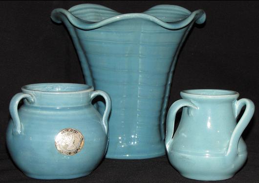 When found on mold cast artware this glaze can range from boring to spectacular. Although rare and attractive this glaze can be uninspiring when on a smooth surface. When applied to a inconsistent surface the glaze takes on beautiful depth. Again this glaze was prone to misfire so finding pieces that are not blistered is a challenge and makes nice examples that much rarer.